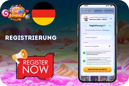 Registrieren Sie sich in einer Minute auf unserer Seite und spielen Sie Sweet Bonanza um Geld zu gewinnen. Nur Erwachsene über 18 Jahre können spielen. Verwenden Sie EUR mit Einzahlungen ab 4€. Das Sweet Bonanza Spiel ist sofort bereit. Befolgen Sie diese Schritte.